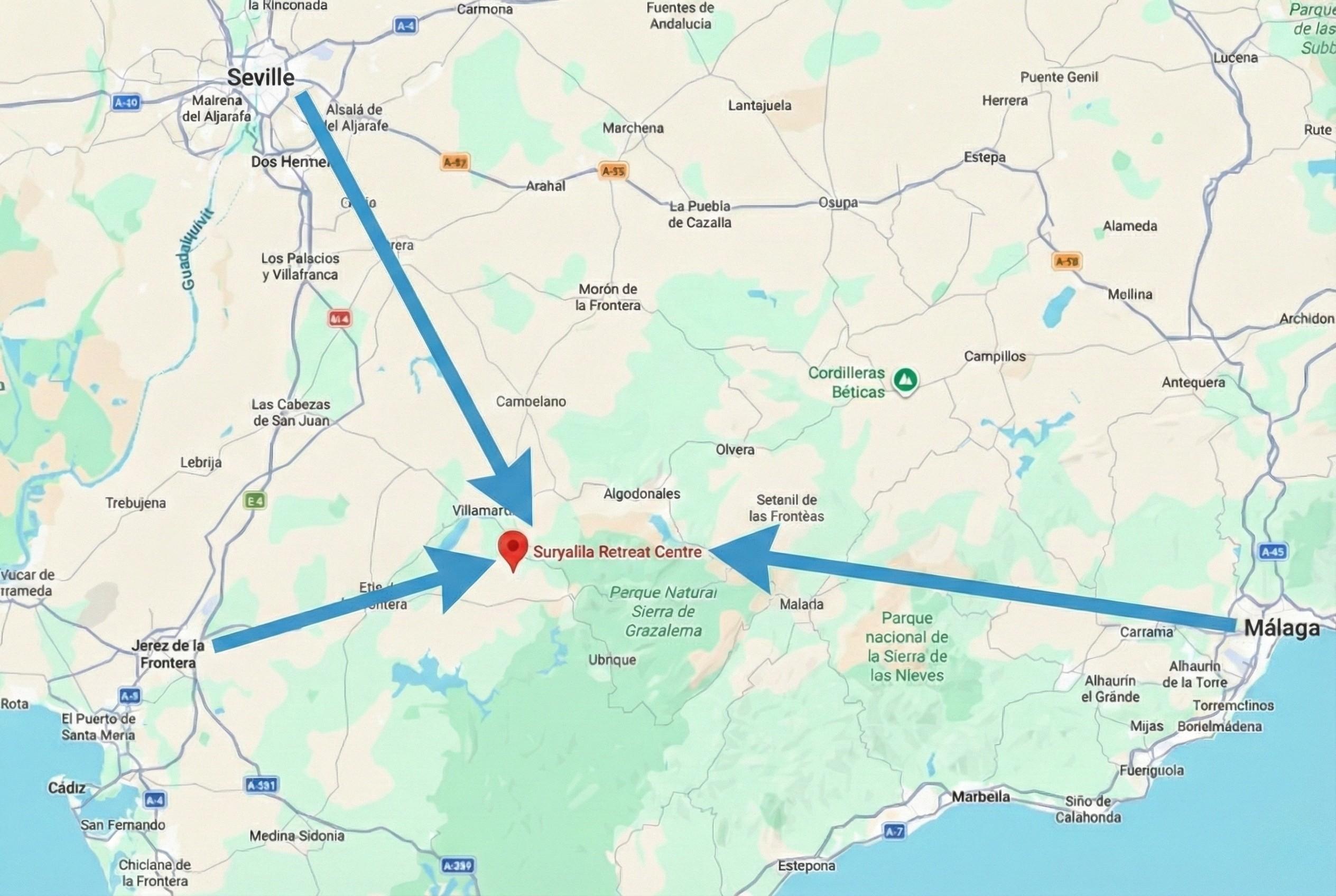 It is near Sevilla, Malaga and Jerez in Spain. We can organise the airport transfer for you. Click the button below to learn more.